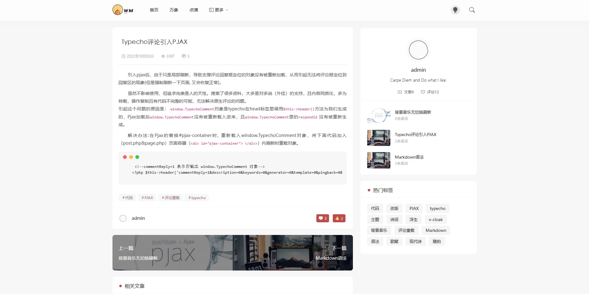Typecho评论引入PJAX