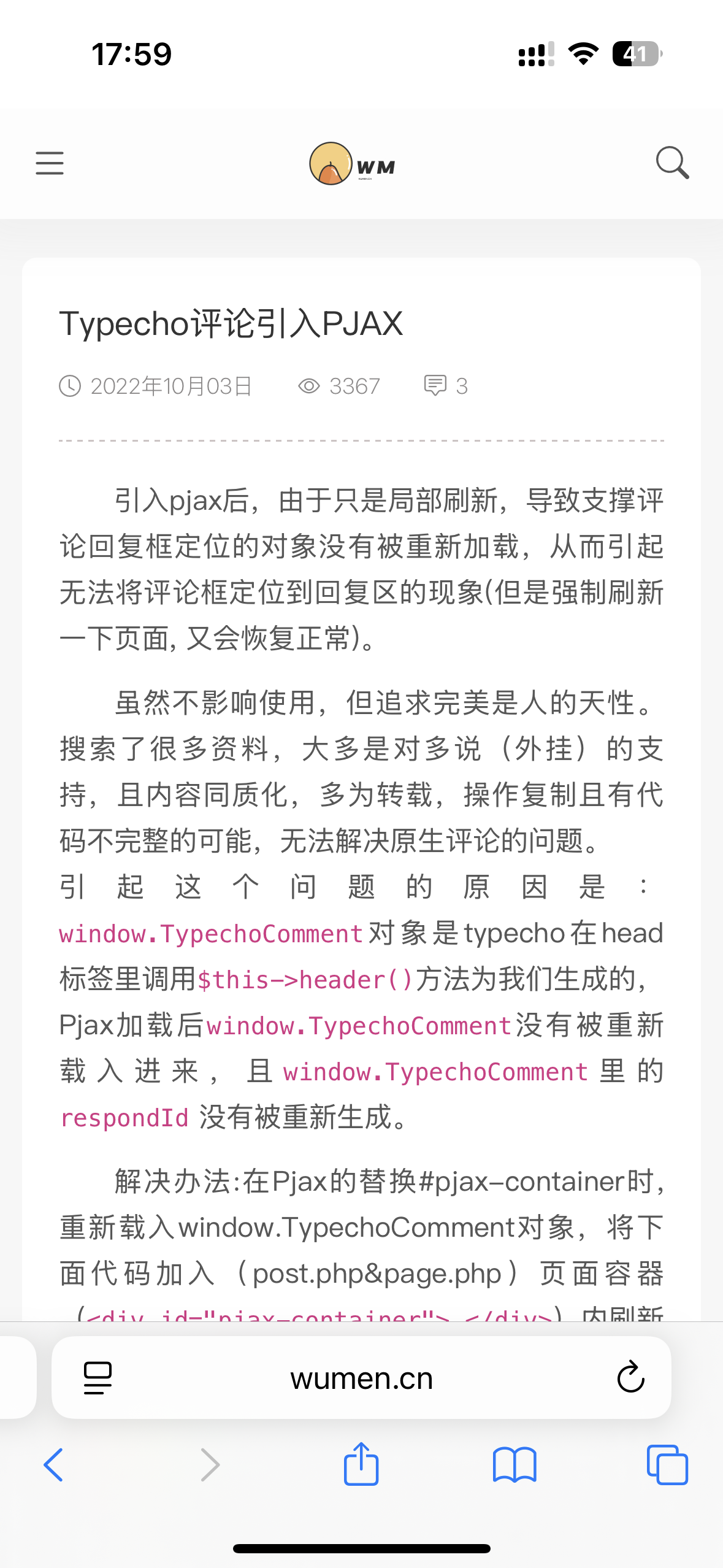引入pjax后,由于只是局部刷新,导致支撑评论回复框定位的对象没有被重新加载,从而引起无...
